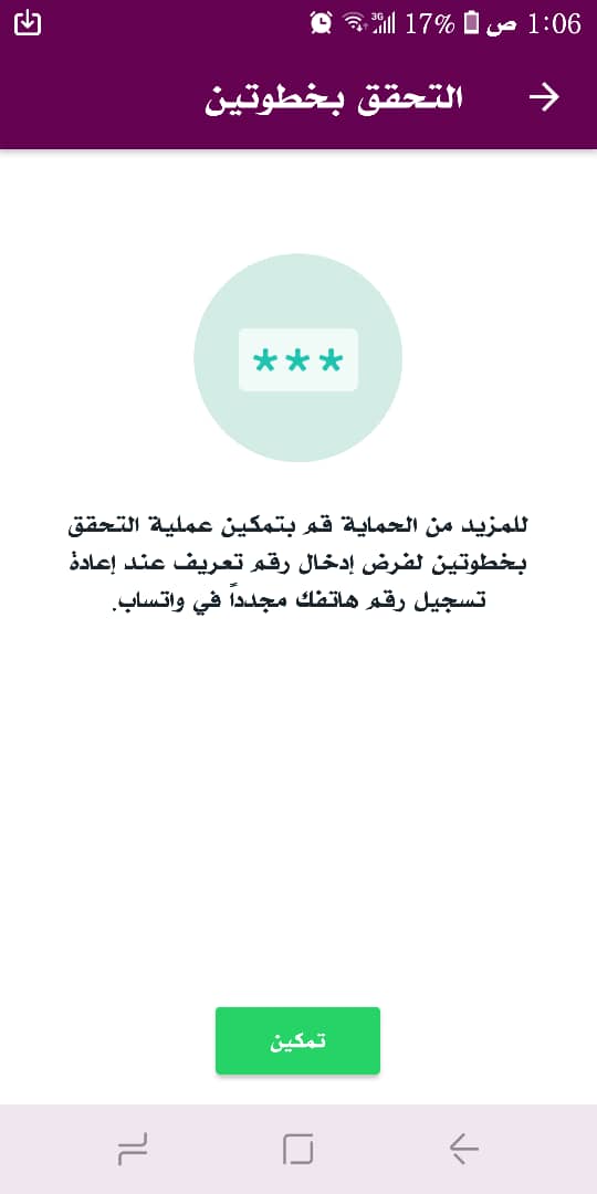 | تفعيل التحقق بخطوتين في الواتساب |